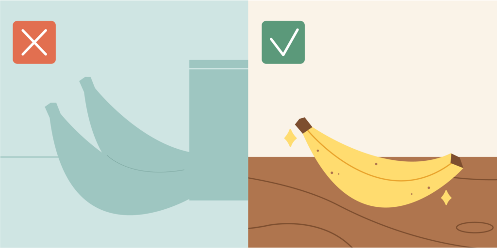 - Bewahre sie in der Kiste mit den übrigen Bananen auf oder in einer Papiertüte bei Zimmertemperatur.