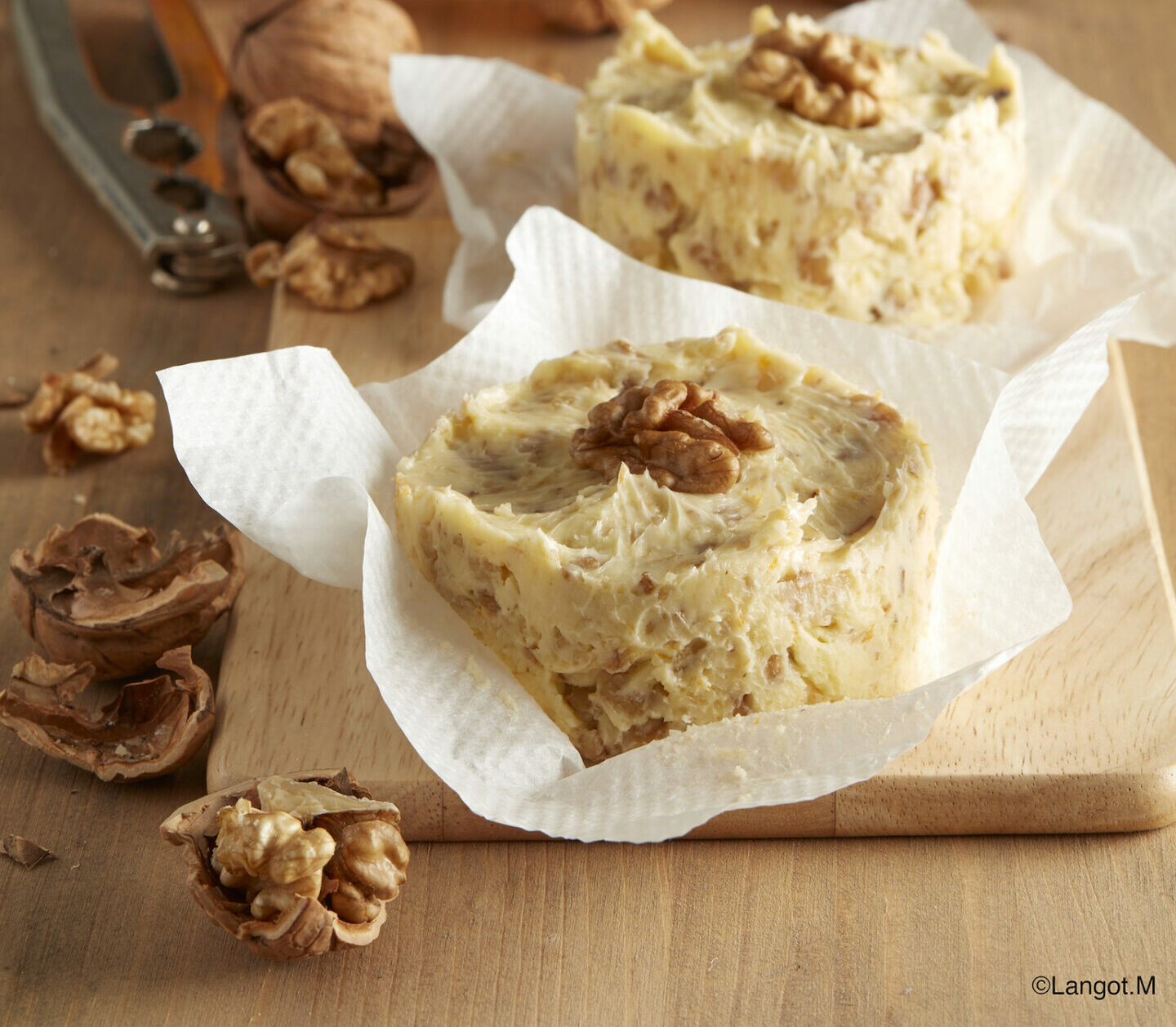 Walnüsse können schnell ranzig werden. Um das zu Verhindern kann man sie hervorragend zu einer nach Thymian duftenden Butter verarbeiten. Diese schmeckt besonders lecker auf einer Scheibe frisch gebackenem Sauerteigbrot aber auch zu Nudeln oder einem Stück Käse.