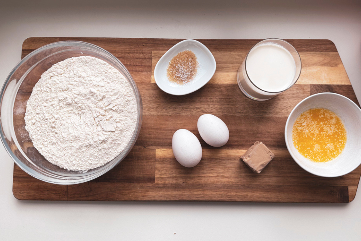 - Die Milch leicht erwärmen und langsam zur Mehlmischung gießen, dabei 3-5 Minuten kneten, bis ein weicher Teig entsteht.