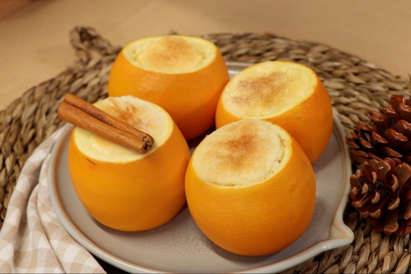 - Schlage dann das Eiweiß in einer mittelgroßen Schüssel und gib nach und nach das Eiweiß hinzu. Lege die Orangen aufrecht auf das Backblech. Löffle die Masse nun in die Orangenschalen und fülle sie dabei zu etwa zwei Dritteln aus.