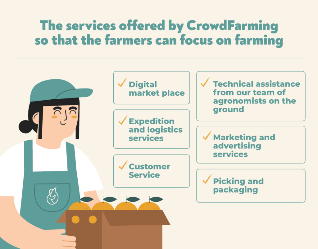 CrowdFarming’s mission is to offer all the necessary services to allow farmers to focus solely on farming. These days, if a farmer wants to sell directly to the consumers they have to not only do farming work, but also need to do marketing, administration, logistics and packaging, finance, customer service, and more. So we take care of these sides of the business, so the farmer can focus on growing and harvesting their products.