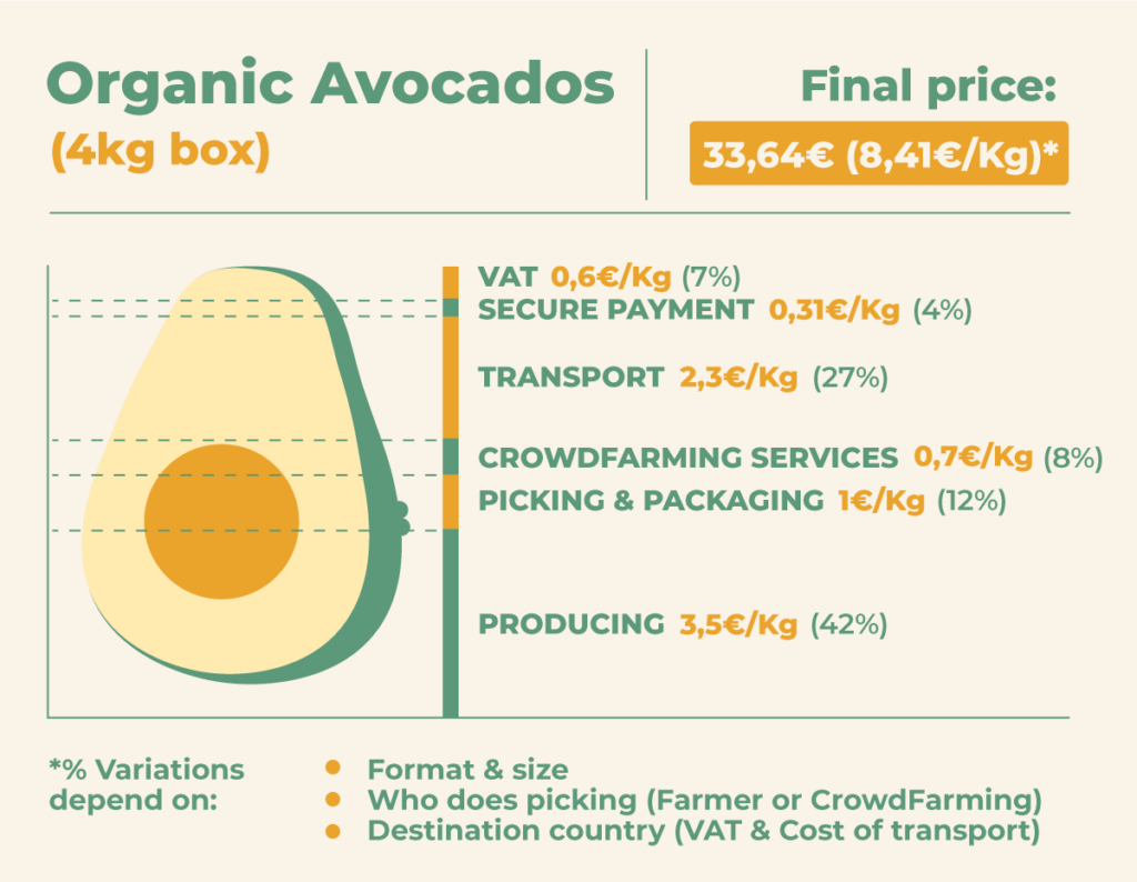 - CrowdFarming services: 0,7€/kg (8% of final consumer price)