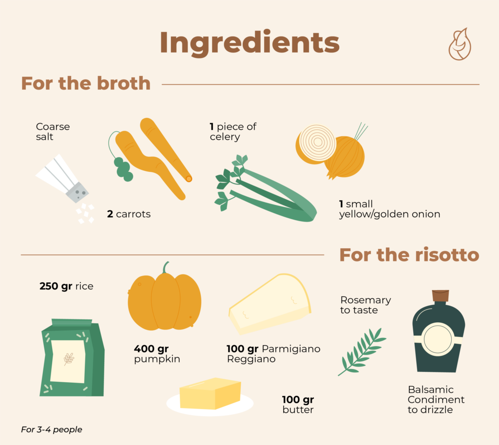 Pumpkin risotto is a traditional dish consumed mainly in winter when other vegetables are naturally less abundant: pumpkin is in fact well suited to being stored throughout the winter. Today we want to share the family recipe of our Italian farmer Andrea, who created a version with balsamic vinegar.