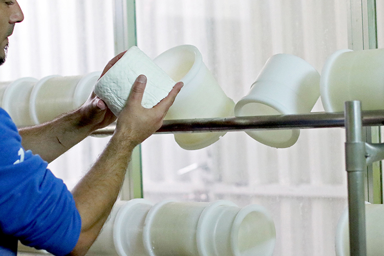 Moldeo: De nuevo es un proceso que hacemos de forma tradicional, a mano, uno a uno, rellenando cada molde con la materia prima coagulada, tras la separación del suero.