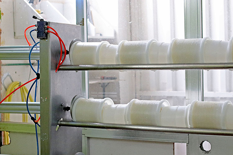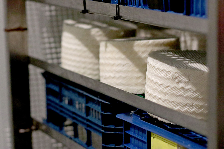 De nuevo, cada día hacemos un trabajo manual de volteado para que los quesos vayan madurando de forma óptima.