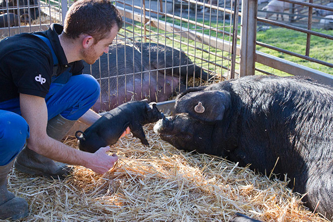 Nuestro principal indicador de bienestar animal es que nuestros animales no se muerden la cola [un signo de ansiedad característico en los cerdos y la razón por la cual se extendió la práctica de mutilación en el sector porcino industrial].