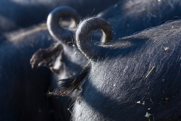 Desde nuestro punto de vista apostar por la producción ecológica es una decisión integral y por ello no queríamos usar una raza de cerdo de capa blanca [el que habitualmente se usa en la producción convencional]. El gascón es un cerdo de capa negra, con un ligero pelaje que lo diferencia de las otras razas.
