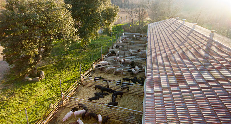 El cerdo de hace muchos años atrás era grasoso y gustoso, ¡porque así son los cerdos! Nosotros queremos volver al pasado y ofrecer una carne gustosa, tierna, infiltrada. Conseguirlo no es fácil, por eso el ritmo de crecimiento de nuestros animales es lento, con una alimentación basada en harina de cereal y forraje ecológicos y disminuyendo drásticamente la utilización de medicamentos y antibióticos que perjudican la calidad de la carne.
