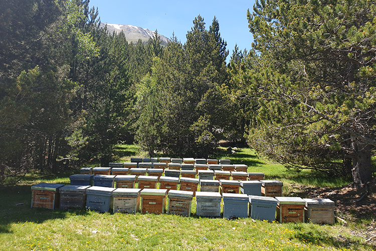 A medianos de mayo, habitualmente, es cuando el Pirineo está preparado para recibir nuestras abejas. Después de viajes de 4h de camino durante la noche, dejamos las colmenas en increíbles paisajes y prados de alta montaña, donde durante todo el verano irán recolectando el néctar de diferentes flores silvestres. Nuestras colmenas pasan un verano fantástico y fresco, ya que se encuentran agrupadas en diferentes sitios que van des de los 1.400 m hasta los 1.900 m de altura. En esta época es cuando envidio a mis colmenas y suelo alargar unos días mi estancia en el Pirineo para poder descansar.