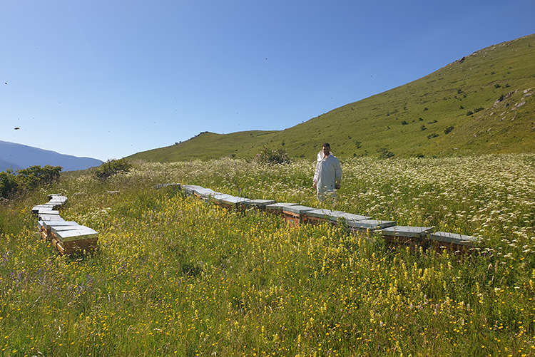 Como apicultor, mi intención es realizar una apicultura sostenible, preservando la salud de nuestras abejas y respetando siempre el medio ambiente. ¿Cómo lo hago? Primeramente, siempre pongo mis colmenas en lugares que tengan un entorno lo más ecológico posible, el mejor sitio es en medio del monte. De este modo evito directamente problemas causados por la agricultura intensiva, ya que los insecticidas son uno de sus grandes adversarios. En el mundo apícola existen una gran variedad de enfermedades y hay que estar siempre atento en las revisiones. Poco a poco van surgiendo tratamientos ecológicos y nosotros ya hemos empezado a utilizarlos. De este modo tendremos unas abejas más sanas y una colonia más fuerte. En el momento de la cosecha solo extraigo el excedente de su miel, ya que es muy importante dejarles siempre una buena ración de miel para que puedan sobrevivir en momentos de sequía o frío.