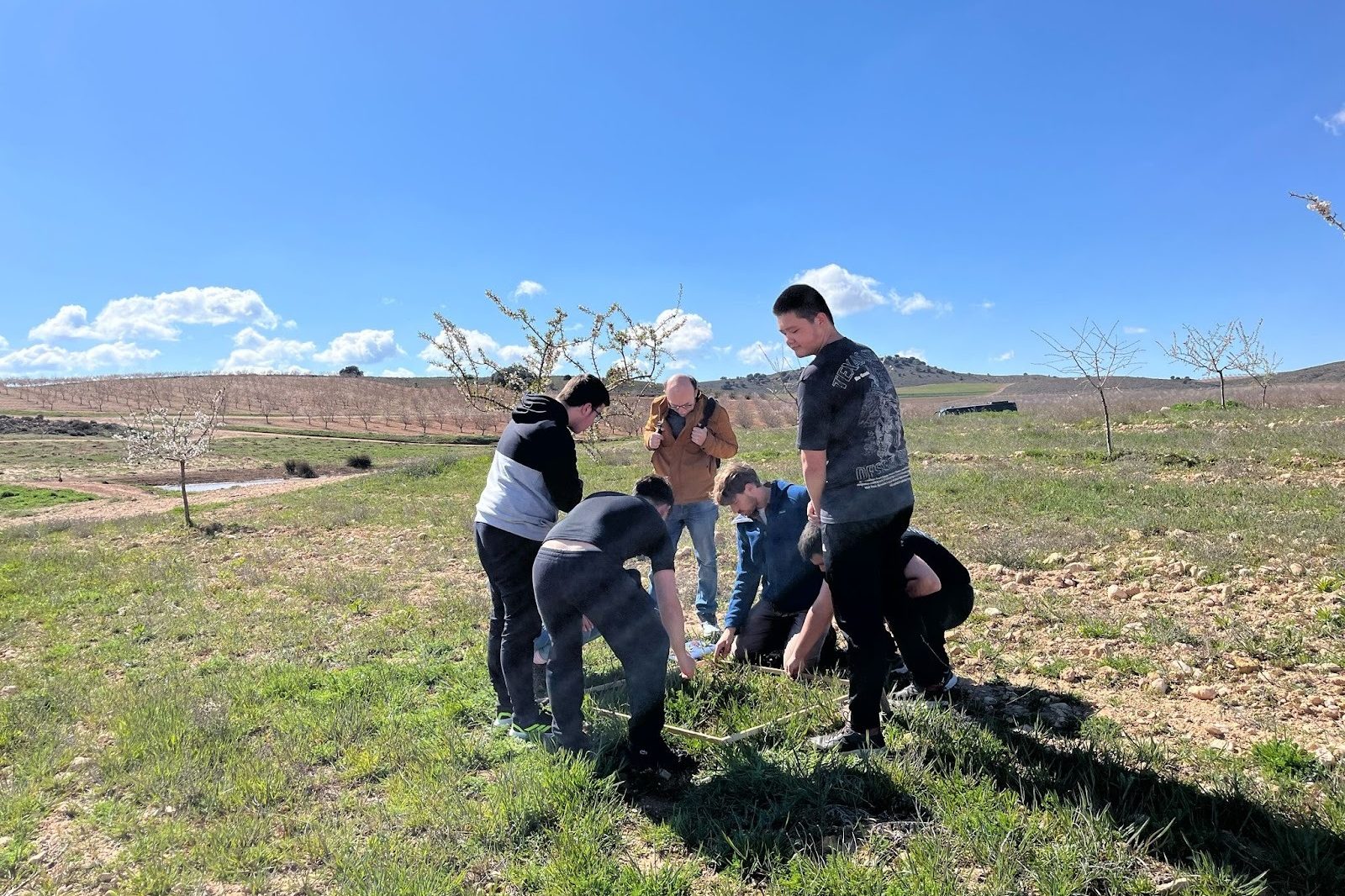 Cada año, estudiantes de secundaria de entre 12 y 16 años dejan atrás las pizarras y pantallas de la vida escolar cotidiana y se dirigen a granjas locales en España. Allí, se convierten en investigadores y observadores. A lo largo de una semana, exploran cómo se producen los alimentos y cómo la agricultura se relaciona con desafíos más amplios como la escasez de agua, la degradación del suelo y el cambio climático. Cada día tiene su propia temática, desde el suelo que pisamos hasta la biodiversidad que lo sustenta. Los estudiantes recogen muestras de suelo, identifican plantas e insectos, miden la infiltración de agua y registran sus observaciones en cuadernos de campo. Descubren las relaciones entre agricultores y ecosistemas, entre las decisiones humanas y sus consecuencias ambientales, entre el campo y la mesa.