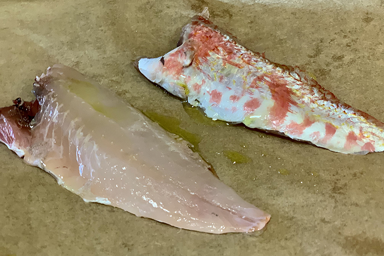 Salmonete con jugo de cebolla fermentada de Diego Guerrero