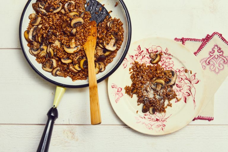 Parece un risotto pero no lleva arroz, sino champiñones. O cualquier otra seta, según la cosecha, la zona, tus gustos o colores.