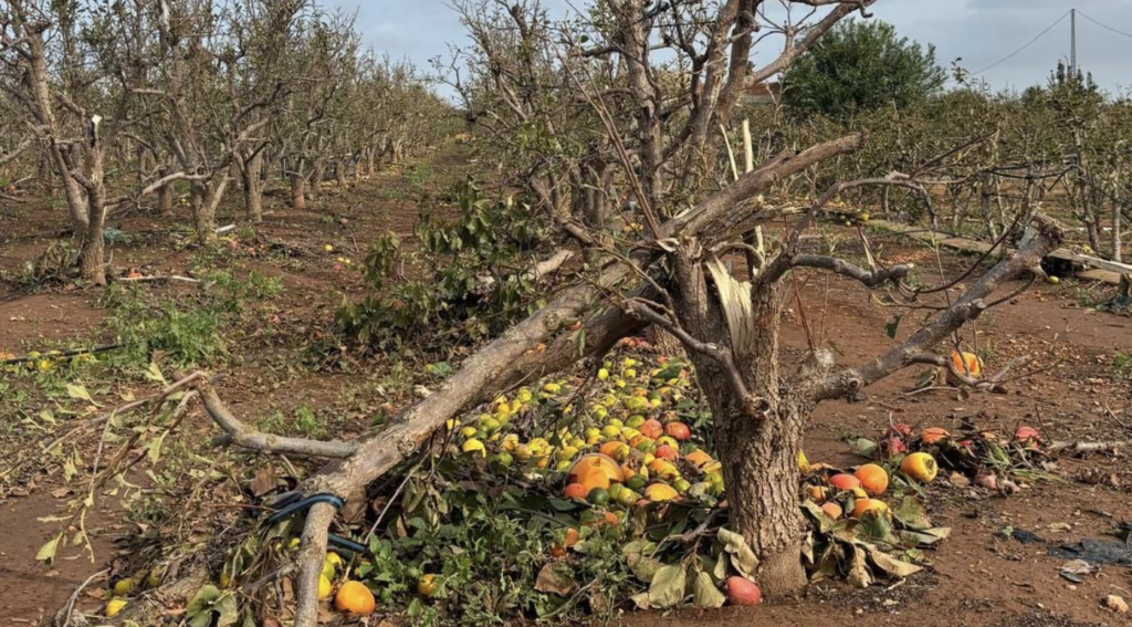 En noviembre empieza la temporada fuerte de cítricos en Valencia. Durante los meses de agosto, septiembre y octubre los tractores pasan entre las calles para fumigar contra plagas como la mosca de la fruta, el piojo rojo o el trip. Este paso continuado entre las filas de árboles hace que la tierra se compacte y que, en caso de lluvia, actúe como una pista deslizante.