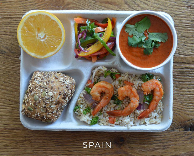 En España, el menú elegido por Sweetgreen era un mucho mejor que el de nuestros compañeros americanos. Parece que se han dejado llevar por la buena fama que la “dieta mediterránea” se ha ganado en todo el mundo. Una dieta que quizás no sea imitada como debería en los comedores escolares españoles porque como se preguntaba en twitter Ana Vega, autora del blog gastronómico Biscayenne, al descubrir este proyecto fotográfico: ¿de verdad es así la comida que se sirve en los colegios de España? El debate sigue a la orden del día en colegios, asociaciones de padres y AMPAS.