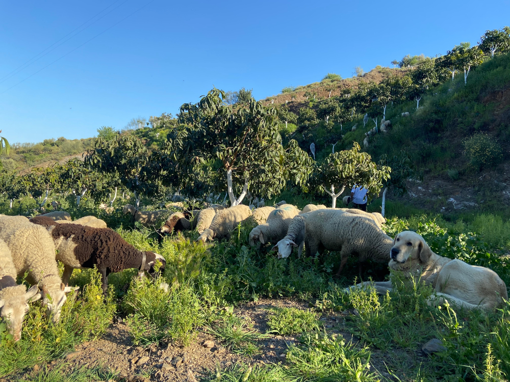 ¡Mientras tanto, recibimos una visita! Las ovejas de la vecina de María se metieron en los campos de mangos para pastar en la maleza. Una forma ancestral y respetuosa con el medioambiente que resulta beneficiosa para todos: las ovejas están bien alimentadas y el suelo se nutre gracias a un abono natural. Se trata de un sistema eficaz que yo también desconocía pero que, en cualquier caso, ¡parecía hacer muy felices tanto a los árboles de mango como a las ovejas!