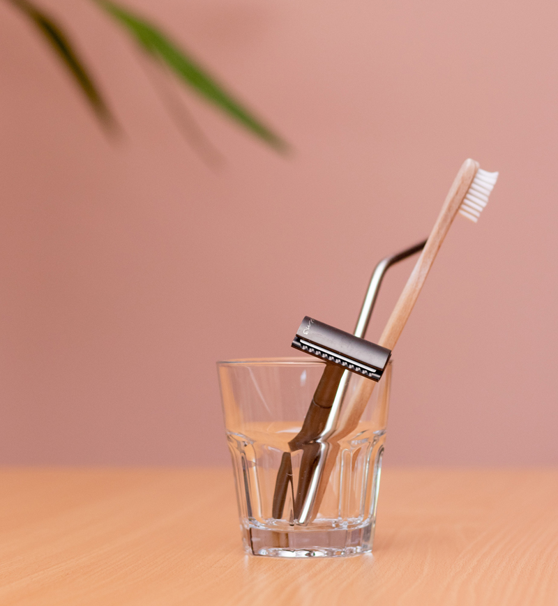 • Cepillo de dientes de bambú y dentífrico sólido o hecho en casa con ingredientes comprados a granel.