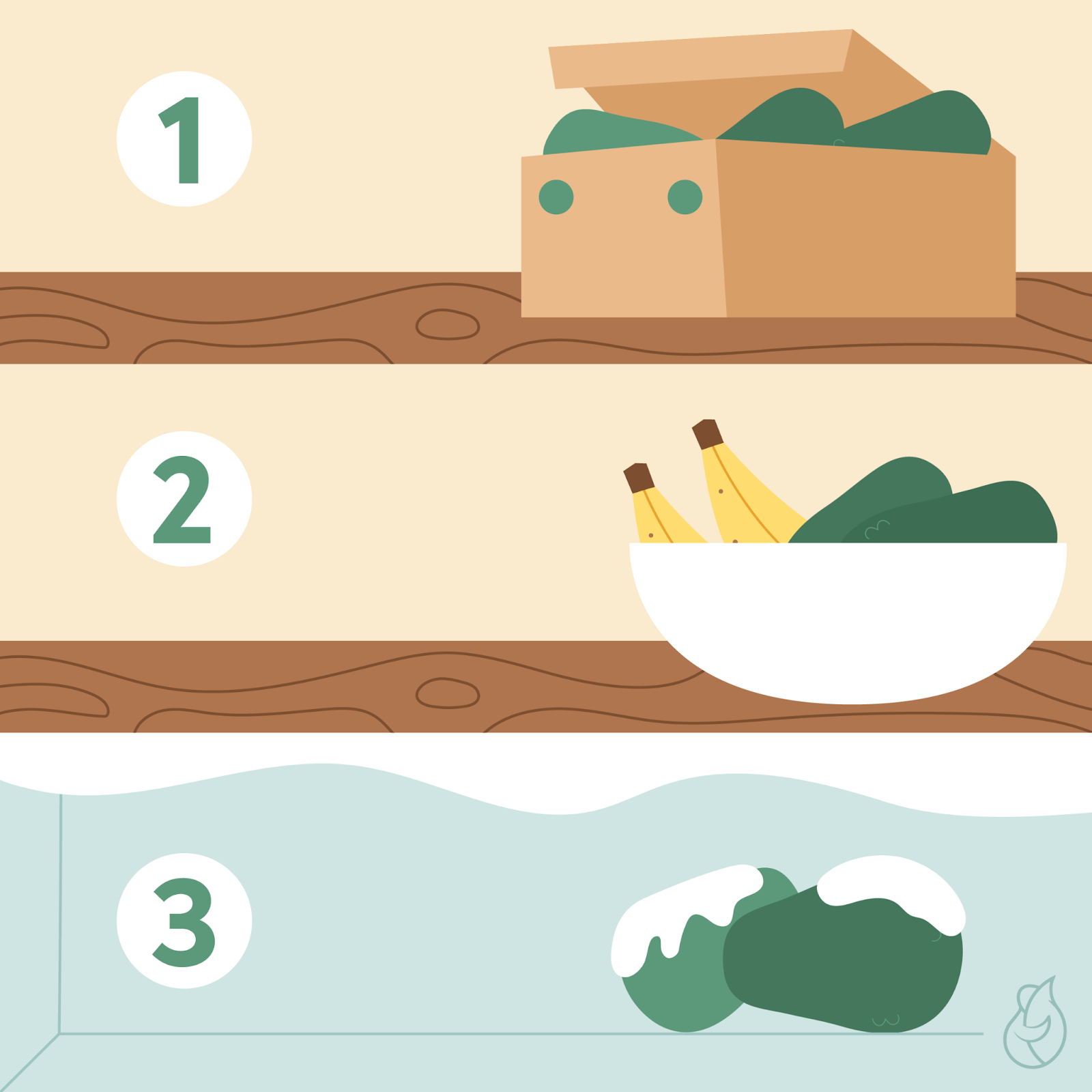 Dans le but de mener à bien notre mission de reconnecter notre communauté avec les champs et les saisons, et de réduire le gaspillage alimentaire, il est essentiel de comprendre comment conserver les produits frais. Que signifie la couleur verte des différents fruits et légumes ? Comment identifier le moment de consommation optimal du produit ? Comment accélérer le processus ou, au contraire, comment faire pour que le produit se conserve plus longtemps en bon état ?