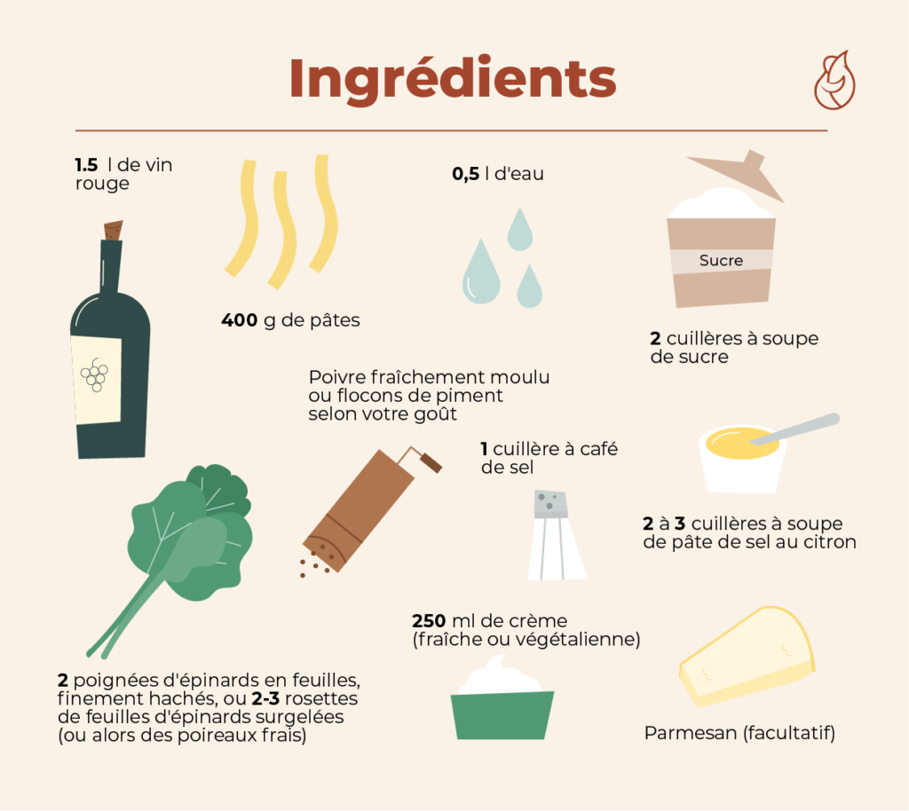 Les pâtes au vin rouge et aux citrons salés de Regine