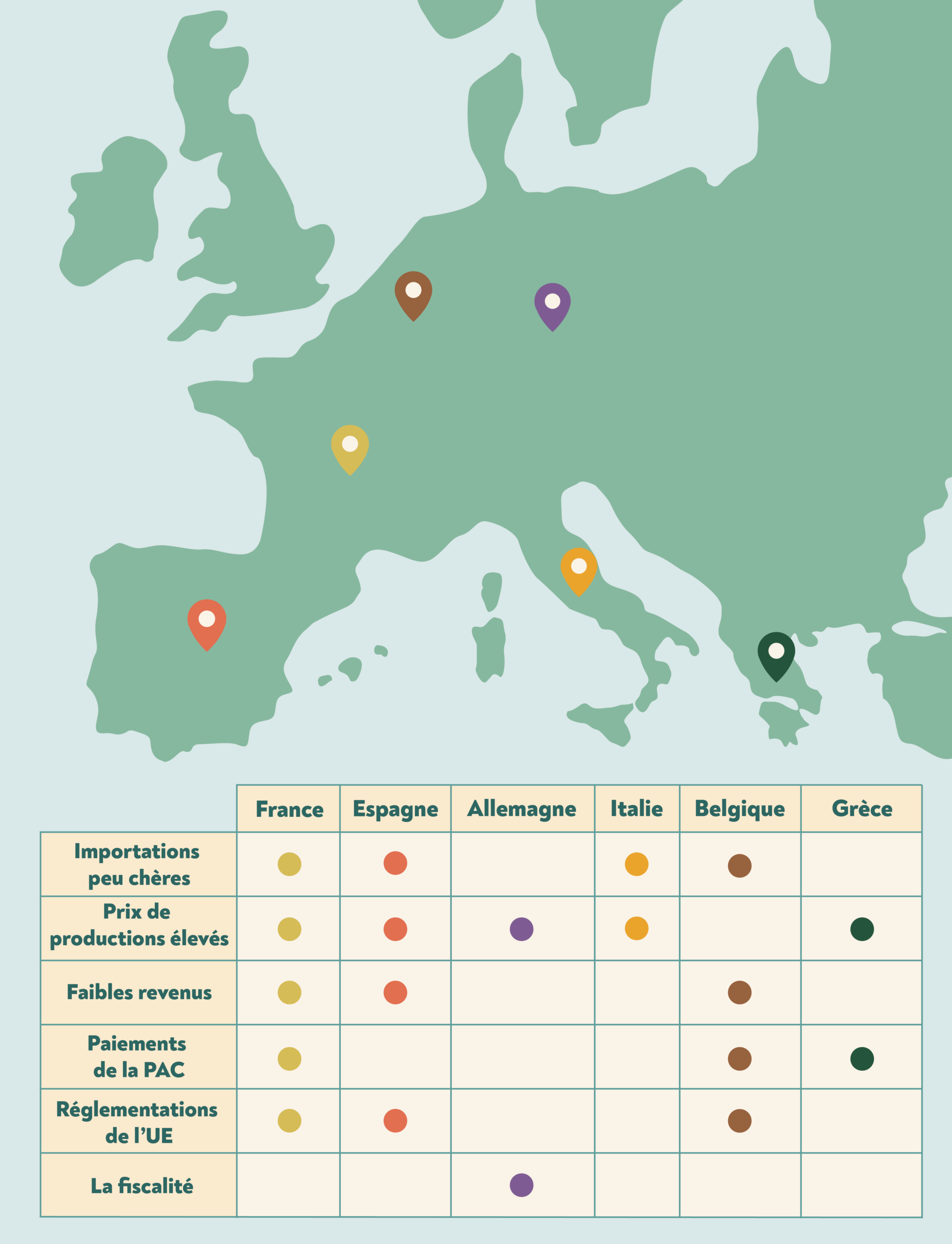 Cependant, les agriculteurs protestent pour une multitude de raisons, et pas seulement contre la réglementation écologique, à savoir : la baisse des prix de vente, l’augmentation des coûts de production, la lourdeur de la réglementation, la puissance et la domination des distributeurs, l’augmentation de l’endettement et la difficulté de rivaliser avec les importations provenant d’autres continents, moins chères, tout en étant confronté à un climat changeant.
